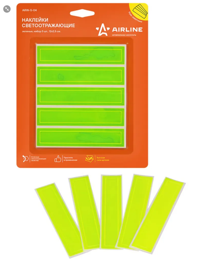 Наклейка светоотражающая 12*2, 5 см зеленая (набор 5 шт), --ARW-S-04-- (AIRLINE)